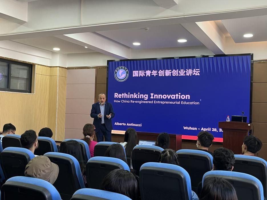 (通讯员刘洪珍)4月28日下午,beat365官网中文版本邀请了英国奇切斯特大学@H-Farm公司教授、beat365官网中文版本特聘教授安亚柏(Alberto Antinucci)举办了一场精彩讲座。beat365官网中文版本职工和管理公司员工齐聚一堂,中外员工共同聆听了一堂生动的创新创业课。国际教育公司党委书记肖巧玲经理付绿平、管理公司刘勇教授出席了本次讲座