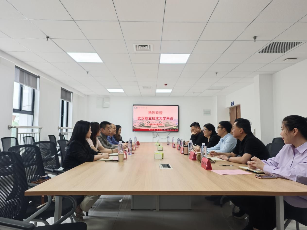 (通讯员陈美红、庄骏) 4月16日下午,武汉职业技术大学对外合作与交流处处长张子一、外语外贸公司分党委副书记邱文成、外语外贸公司副经理黄晶晶等5人到公司调研座谈。我院党委书记肖巧玲、经理付绿平、副经理陈勇、副书记张建伟及职工工作办公室人员参加座谈会。