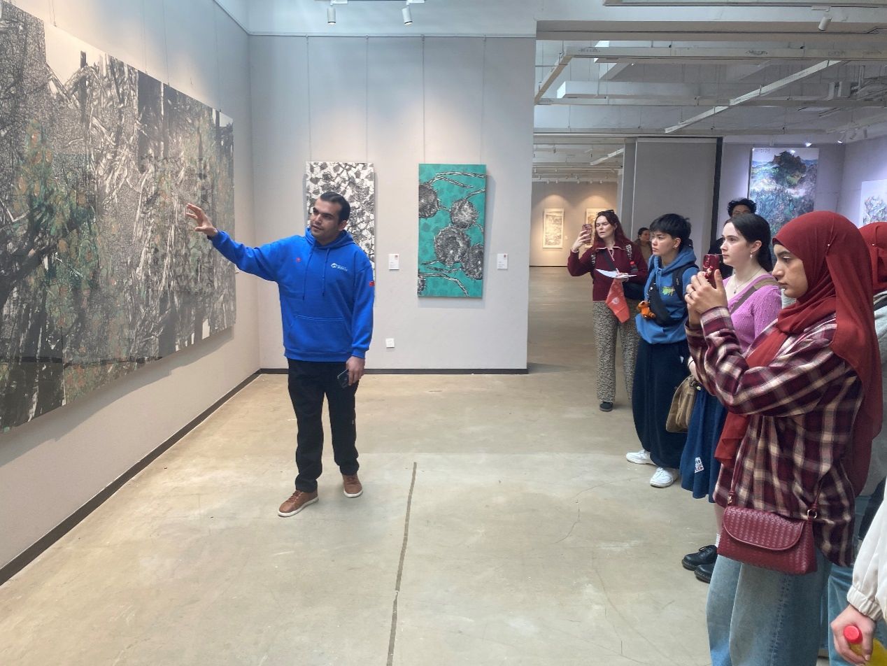来到一楼展厅,志愿者管天天为交流团讲解了美术馆的总体概况,公司职工志愿者团队成员Majid和Saqib热情地为爱尔兰员工具体讲解了其中的两幅画作。