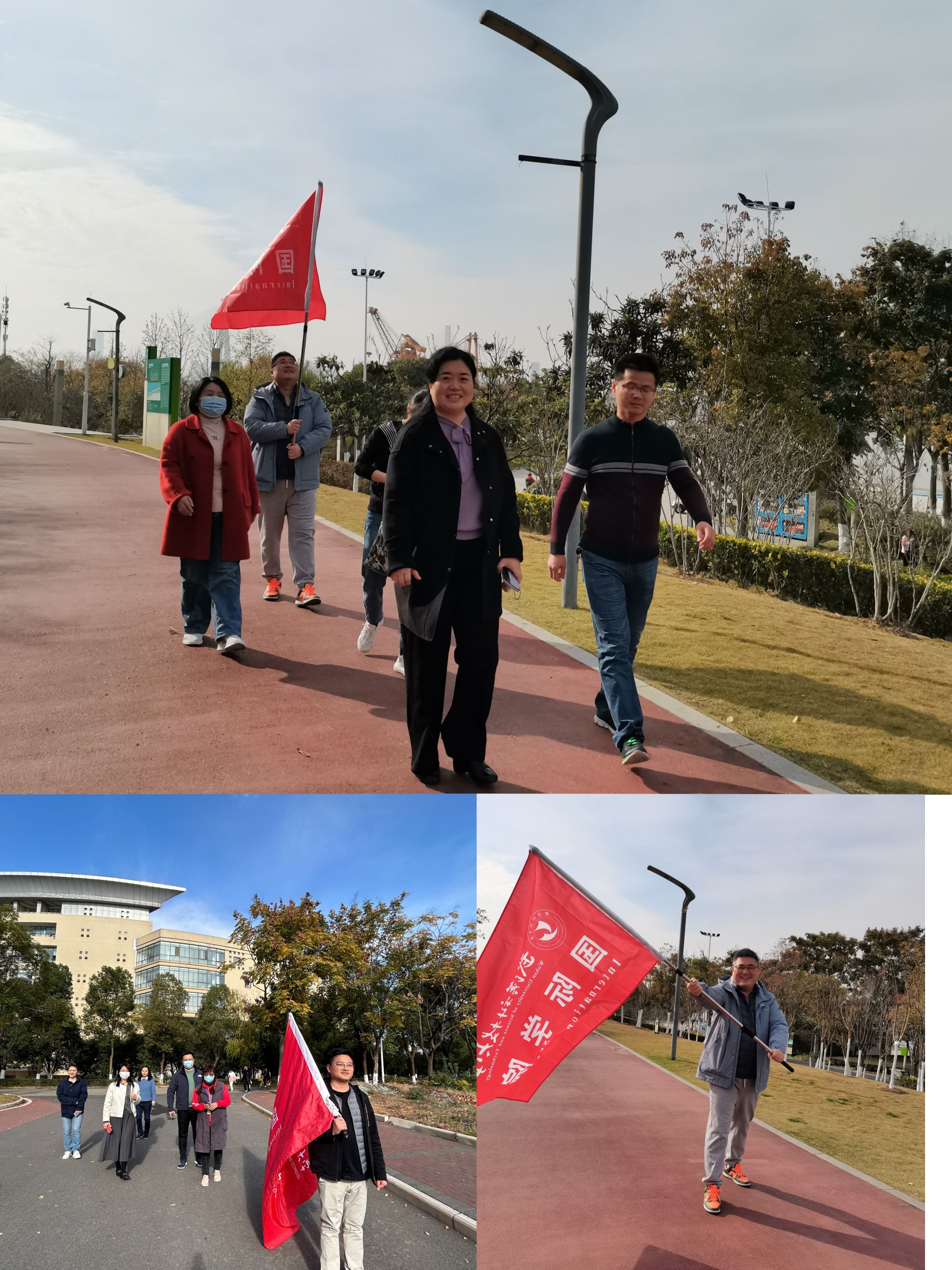 活动中,大家迈着矫健的步伐,沐浴着冬日的暖阳,走在风景如画的沁湖边和江滩公园。老师们一路上精神抖擞,欢声笑语。